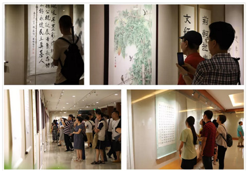 展覽較好地展現(xiàn)了作者深厚扎實的藝術功底和執(zhí)著純粹的藝術情懷。作品風格多樣,既有典雅秀麗的工筆畫和書法小品,也有雄渾勁挺的書法大作,樸素而真摯,豐富而靈動。作品與工藝美術研究所展廳環(huán)境融為一體,于樸實中見功力,于靜穆處觀神韻,既有縱情揮灑中的細膩,也有精描細繪中的厚實。