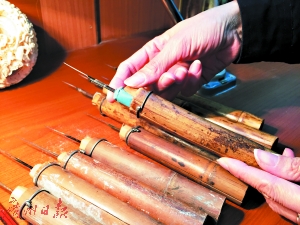 仇玉英展示她改良后制作卓刀的工具