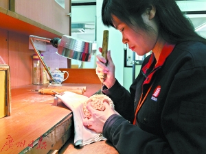 “牙雕從最初的簡(jiǎn)單飾品、用具,到現(xiàn)在的精致工藝品,是一代一代傳研的成果。前輩們的探索研究,才有了現(xiàn)在的牙球內(nèi)層鏤空技術(shù)——通雕卓花。我在自己所在的這一代人中,希望對(duì)它有進(jìn)一步的改進(jìn),這才是鉆研技藝的最大目標(biāo)。”仇玉英說(shuō)。(文/圖 廣州日?qǐng)?bào)全媒體記者王曉全)