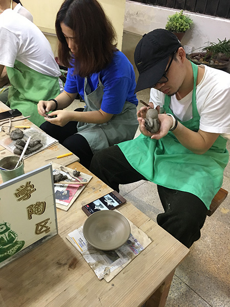 活動(dòng)內(nèi)容是陶藝DIY,由青年團(tuán)員兩兩配對(duì)進(jìn)行組合,合作制作陶藝作品。制陶活動(dòng)分為拉胚環(huán)節(jié)和手捏環(huán)節(jié),既考驗(yàn)配合與信任,也挑戰(zhàn)想象和創(chuàng)意。青年團(tuán)員們紛紛擼起袖子,全情投入到制陶活動(dòng)中去。每一位成員均配合默契、剛?cè)岵?jì),充分發(fā)揮無限創(chuàng)意,在陶藝?yán)蠋煹南ば闹笇?dǎo)下,把一團(tuán)團(tuán)濕潤(rùn)的泥巴賦予了靈氣和想象力,變成一件件耐人尋味的藝術(shù)品?;顒?dòng)最后還投票評(píng)選出三項(xiàng)優(yōu)秀作品并進(jìn)行頒獎(jiǎng)。